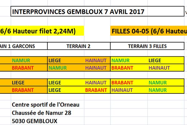 Programme des inter-provinces à Gembloux le 07 Avril 2017.