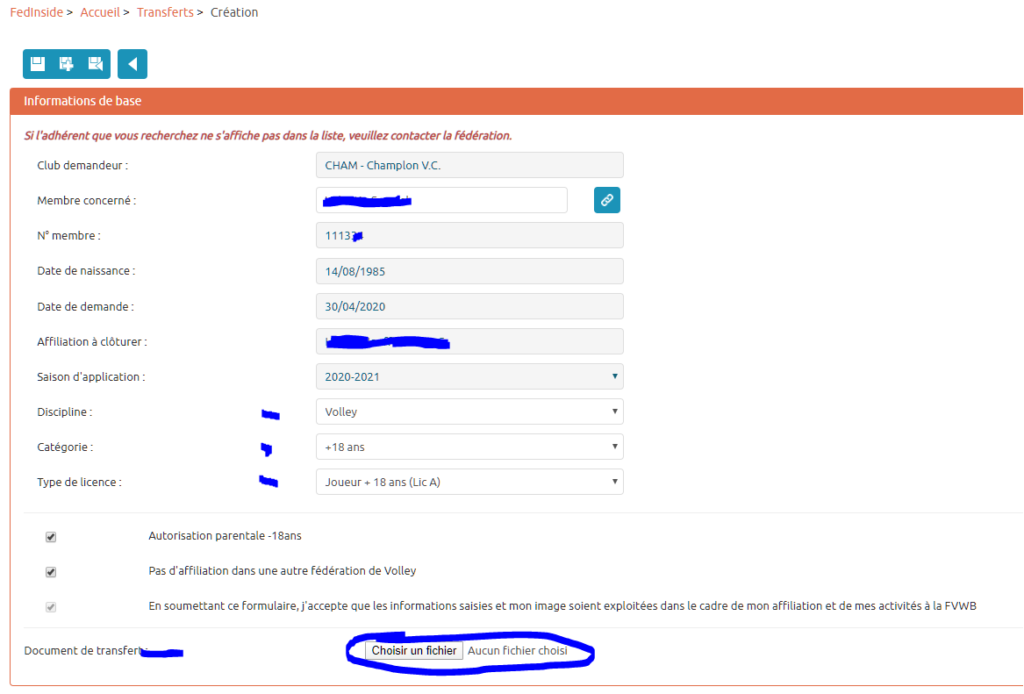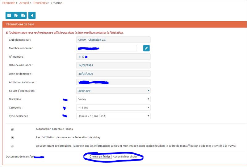 Le CA FVWB a accepté ce jour une simplification du document de transfert valable uniquement pour cette saison de transfert (du 1-5-2020 au 31-5-2020).