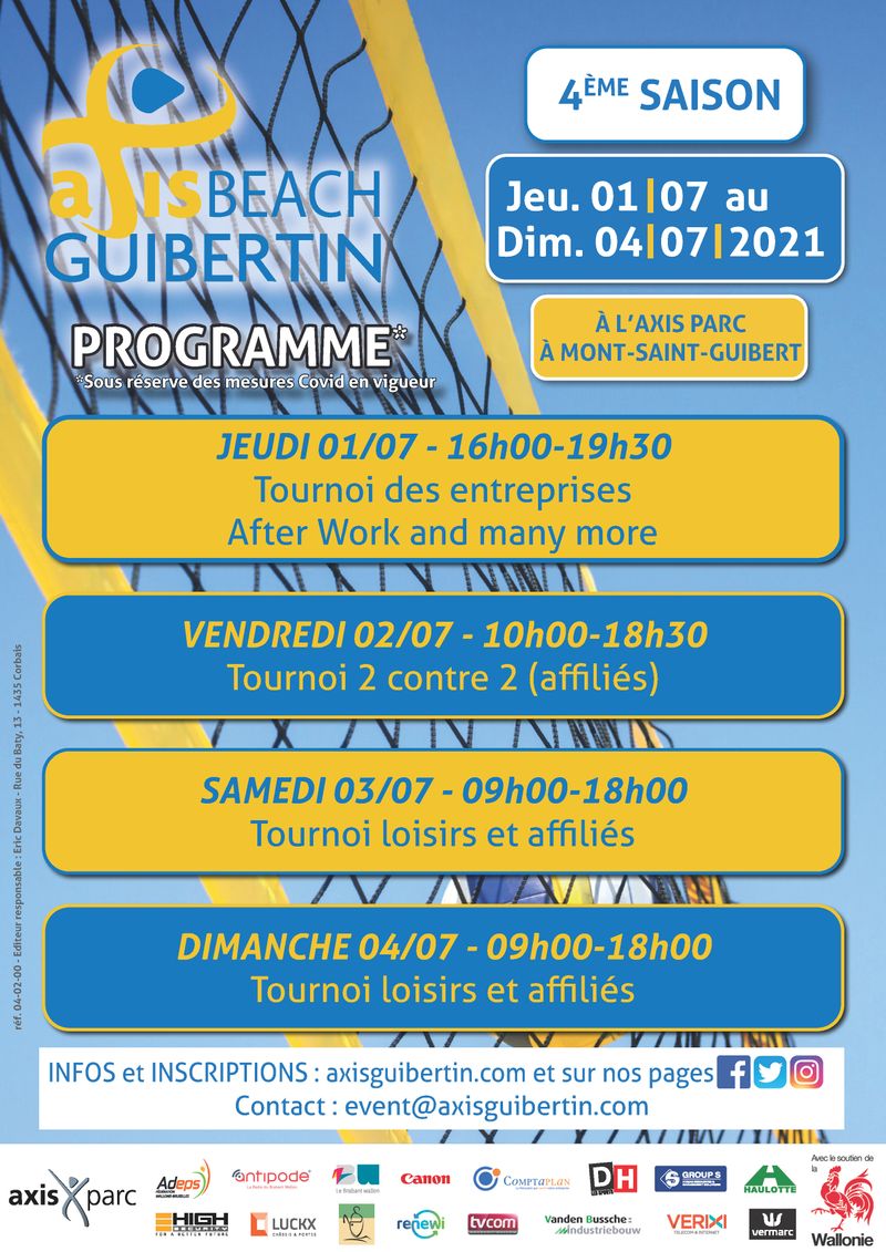 Administration > Clubs Annonces > CLUBS jeu 22 juillet 2021Le club guibertin met sur pied deux stages de volley-ball du lundi 23/8 au vendredi 27/8 (de 9h00 à 16h00 ; garderie possible) dans les installations du centre sportif Jean Moisse.Stage 1 : organisé en collaboration avec la province du Brabant wallon, est réservé aux jeunes de 6 à 10 ansStage 2 : réserv...