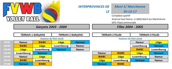 Administration > FVWB Cellules > Jeunes (CPJ) Annonces > FVWB Compétitions > Jeunes|Annonces Jeunes jeu 26 décembre 2019Bonjour Vous trouverez en annexe le programme de l’inter province de Thimister sous réserve de la participation de Namur car je n’ai pas encore eu de confirmation. Bonnes fêtes à toutes et à tous, Michel Loppe
